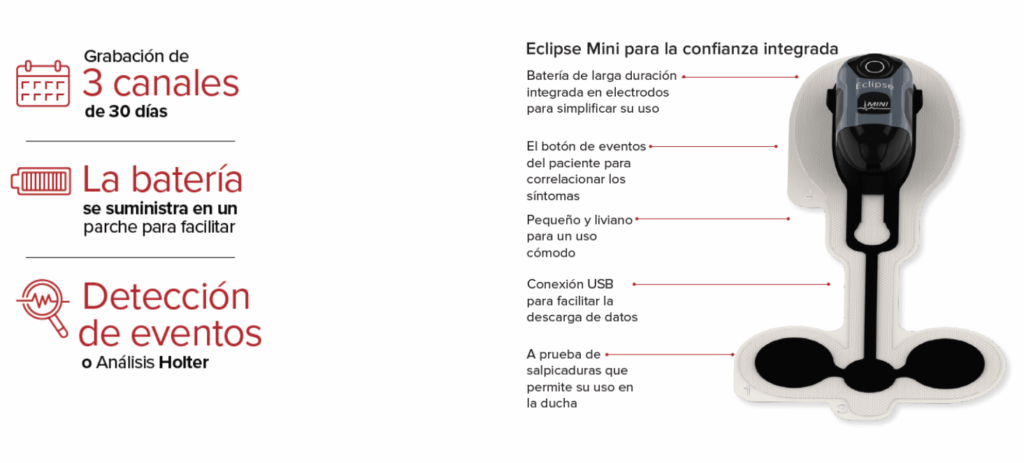 El ECLIPSE MINI representa un salto evolutivo en el monitoreo cardíaco ambulatorio, ofreciendo características que priorizan la comodidad del paciente sin sacrificar la precisión clínica: